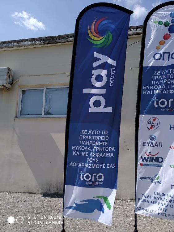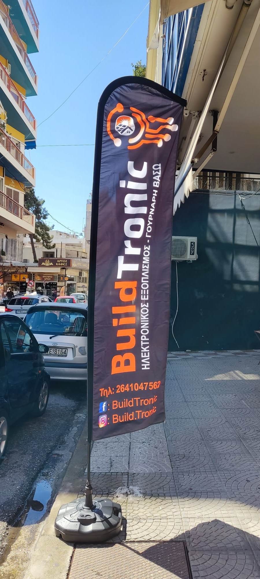 Σημαίες πεζοδρομίου ύψους 4 μέτρων περίπου με διάσταση υφάσματος 75 cm πλάτος Χ 270 cm