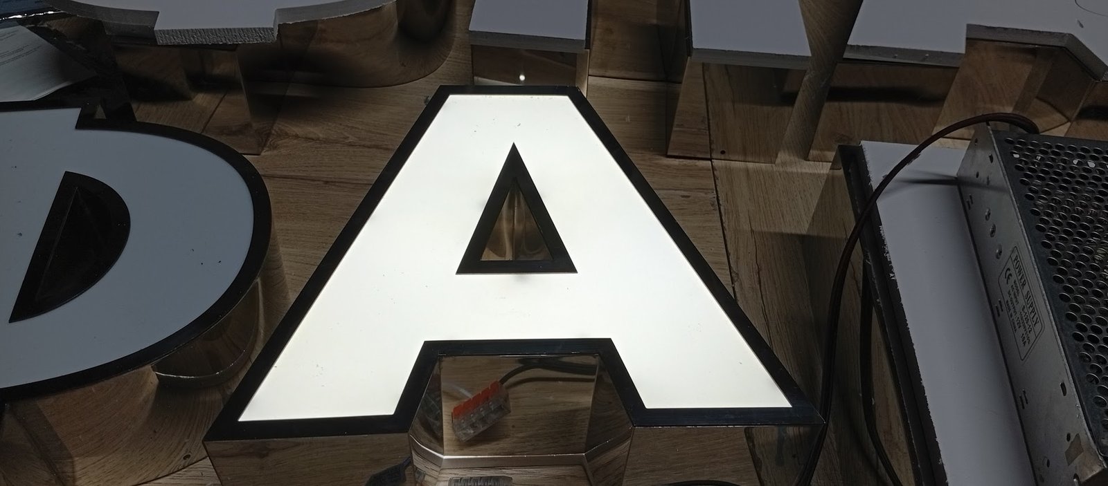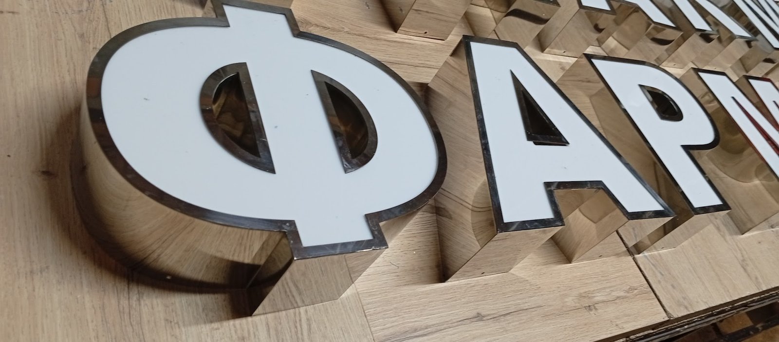 Τρισδιάστατα γράμματα ανοξείδωτα (ΙΝΟΧ) με εμπρόσθιο φωτισμό τεχνολογίας LED